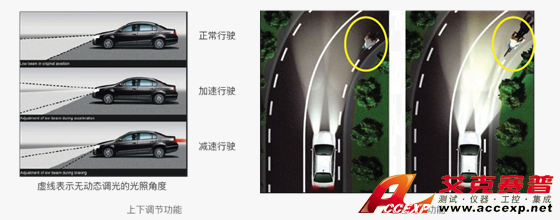 自適應前照燈控制系統(Adaptive Front-lighting System,簡稱AFS)是一種智能燈光調節系統。通過感知駕駛員操作、車輛行駛狀態、路面變化以及天氣環境等信息,AFS自動控制前照燈實時進行上下左右照明角度的調整,為駕駛員提供最佳道路照明效果。