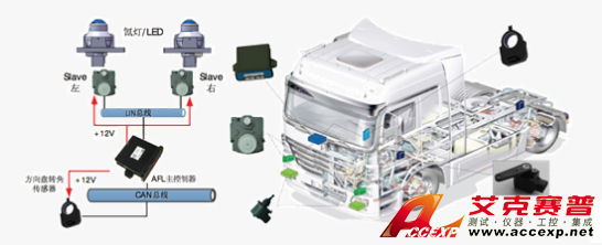 隨著AFS在乘用車上的發展成熟和廣泛應用,AFS在卡車、客車以及特種車輛上的應用越來越被人們重視,國內外汽車廠商普遍對此展開了研究。Accexp充分利用自身在AFS系統上的優勢,已經與國內多家客戶開展了AFS-24V系統的合作開發,并成功實現配套。