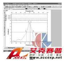 打開菜單欄Analysis下拉式菜單,選中FFT選項,對圖6所示的脈沖反射波形進行傅立葉變換。根據被測探頭的頻率標稱值,在頻譜圖橫坐標中選取相應的頻率范圍值(這一范圍值通常為0MHz到被測探頭頻率標稱值的2倍),這樣就得到了理想的脈沖反射頻譜圖。在脈沖反射頻譜圖上,把脈沖反射響應曲線上的頻率峰值點下降6dB處(頻率響應曲線的峰值點下降一半處)的fL和fH值定義為帶寬的低值和高值,兩者之間的算術平均值即為被測探頭的回波頻率,見圖7。