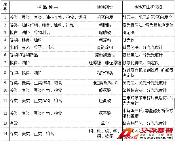 有人說市場經濟就是用法律和法規調控和規范化的經濟。國內外制訂的一系列標準是規范生產、經營和消費的法規組成部分,與農業和食品有關的標準更是關系著國家經濟發展、人民身體健康和提高產品國際市場競爭力。這些標準中詳細地規定了應檢測的組分(成分)、分析測試的方法和儀器,然而無論是國際標準、還是國家或行業標準,都是最關鍵、最基本的要求,相關檢驗方法和儀器雖不代表當今的最新水平(需經充分驗證、認同、普及),但必然是最經典的、公認的、各層次易實現的,也最具法定地位的。科學儀器在其中被譽為“物化法官”。現例舉4個標準中所確定的分析方法和儀器。隨著經濟和科技發展、技術監督和檢驗標準更加嚴密,相關的技術裝備和人員素質的提高,必須更多、更先進的現代科學儀器和分析方法列入國家標準之中。