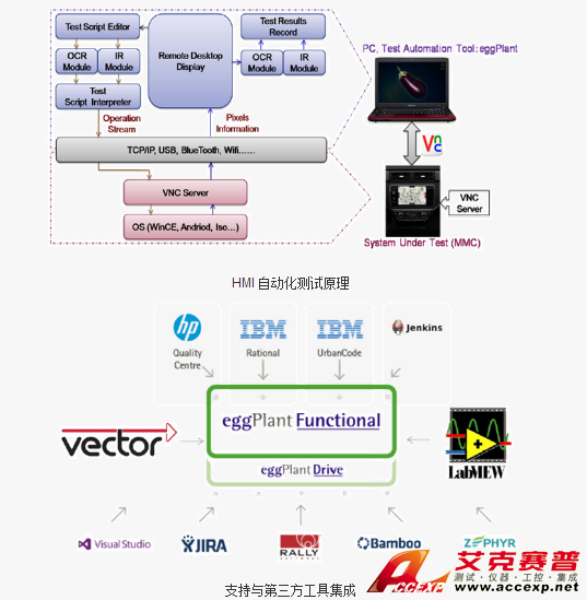 應(yīng)用HMI 自動化測試軟件建立自動化測試流程,基于遠(yuǎn)程桌面來替代攝像頭捕獲圖片,通過軟件指令替代機(jī)械手輸入事件,應(yīng)用高精度的圖像對比算法以及OCR 算法, 判別屏幕上圖像表現(xiàn),生成測試報(bào)告,提高測試效率。開放自由的接口功能使得軟件能夠集成更大的測試項(xiàng)目中,聯(lián)合其他軟硬件測試軟件,為產(chǎn)品提供更全面的測試成果。