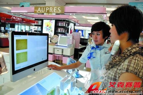 皮膚測試儀讓女人們更加了解自己的皮膚特征,以便購買更適合的化妝品。據了解,測試儀一次可以測試三塊皮膚,每一塊都有一深一淺兩個圖像,測試者可以清楚地看到自己皮膚的狀況,通過圖像可以觀察測試者毛孔大小,油脂多少,有無光澤,皮膚彈性,接觸化妝品是否過敏等,然后把觀察結果與各類皮膚特點做對比,就基本可以判定自己皮膚的性質。