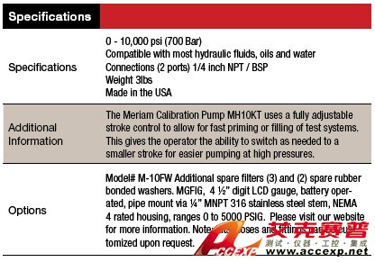 美國 Meriam MH-10KT系列液壓校準泵的詳細介紹