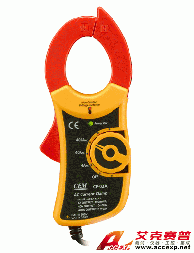 CP-03A/03B高分辨率的交流,交流/直流鉗形適配器上,提供非侵入性與4A的電流測量分辨率為AC到1mA,直流/交流電流,低電流適配器汽車,工業控制或家電維修完善