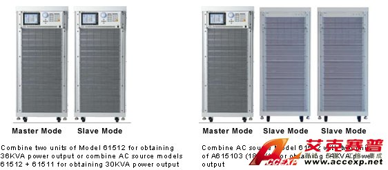 中茂 Chroma 61600 可編程交流電源本身具有每次開(kāi)機(jī)時(shí),均會(huì)做自我診斷測(cè)試,而且具備有完善的保護(hù)功能,包括有:過(guò)功率 (OP),過(guò)電流(OC),過(guò)電壓(OV)和過(guò)溫度(OT)保護(hù),保證其品質(zhì)與可信賴度,提供給要求嚴(yán)苛的工程師們測(cè)試和自動(dòng)測(cè)試系統(tǒng)的應(yīng)用。61511/61512/61611/61612交流供應(yīng)器可經(jīng)由(Master-Slave)并聯(lián)輸出模式以達(dá)成使用者對(duì)于高功率的需求。例如:連接5臺(tái)18KVA交流供應(yīng)器在并聯(lián)模式下可實(shí)現(xiàn)90KVA的輸出功率。使用者還可利用專為并聯(lián)模式所開(kāi)發(fā)的18KVA并聯(lián)專用機(jī)為有效替代slave單機(jī)的解決方案。請(qǐng)參考以下為61511/61512/61611/61612及A615103在并聯(lián)模式下的配置圖。
