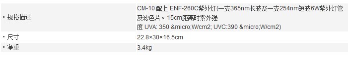 CM-26重量輕,尺寸小,因而便攜性好。ENF-260C紫外燈為UL 、CSA 及CE認可。