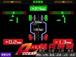 測量系統:外傾角設計了以車輪傾斜和顏色的變化來區分;總前束、獨立前束設計了以車輪的變動和顏色來區分 |