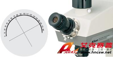 10分測角目鏡(適用于除U?LU?LMU以外的全部機種)視場中會出現(xiàn)十字線和角度刻度,當轉(zhuǎn)動目鏡底部的滾花環(huán)時,十字線和游標均會在180°范圍內(nèi)旋轉(zhuǎn)。