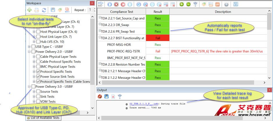 ●一致性測試選項-Voyager是經過認證的鏈路驗證系統(LVS),用于執行鏈路,集線器,PD和USB Type-C一致性測試