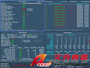 在輔助數據狀態顯示中,按照SMPTE 2016標準提供了有效格 式描述符(AFD)的簡明信息,此外還有視頻索引寬高比(Video Index Aspect Ratio)、寬屏信令(WSS)、V-Chip、TSID、 CGMS-A、廣播標志、CEA708/608隱蔽字幕、圖文電視以及 時間碼等信息。