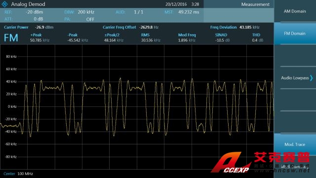 基本數(shù)字調(diào)制格式被用于多種應(yīng)用,例如近場通信。R&S FPC 支持 ASK 和 FSK 分析。數(shù)字調(diào)制顯示屏包括軌跡、眼圖、調(diào)制誤差和符號(hào)分析。此外,還提供低功耗藍(lán)牙 (Bluetooth LE) 和胎壓監(jiān)測系統(tǒng) (TPMS) 的專有配置預(yù)設(shè)。通過內(nèi)置揚(yáng)聲器或耳機(jī)插孔支持解調(diào)音頻。