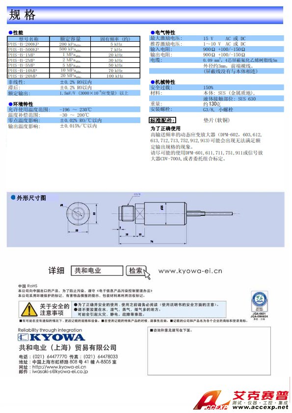 簡介:KYOWA PHS-B 高可靠性壓力傳感器