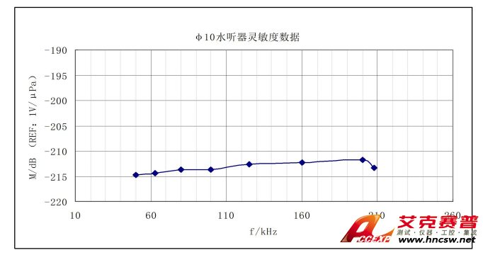 簡(jiǎn)介:Accexp 10標(biāo)準(zhǔn)水聽器經(jīng)過計(jì)量后可作為寬帶標(biāo)準(zhǔn)水聽器,靈敏度在-211dB~-215dB 之間,在 20Hz~200kHz之間靈敏度曲線非常平坦,所以也可作為接收用于采集寬帶信號(hào),內(nèi)部沒有前置放大器,使用較為方便。 技術(shù)參數(shù): 使用頻...