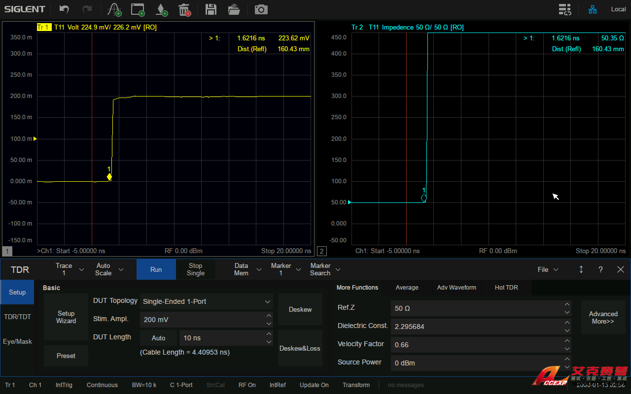 鼎陽SIGLENT SNA5082X矢量網絡分析儀支持TDR時域反射計測量功能,可在時域對傳輸線的特征阻抗,時延等參數進行分析。