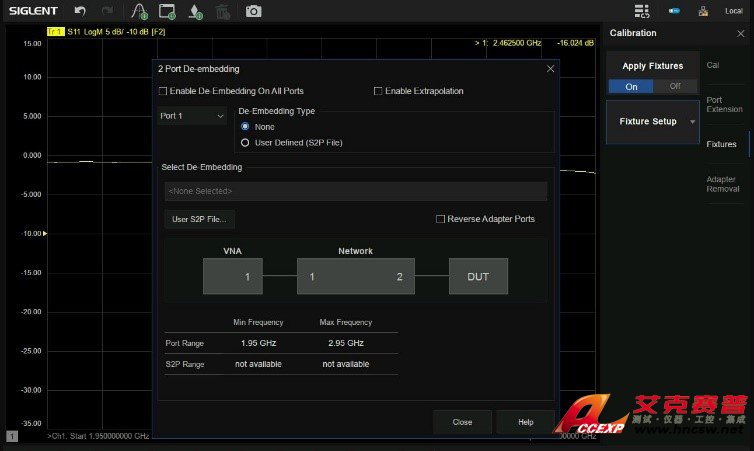 在微波射頻領域,如何有效消除有害的測試夾具效應是一大挑戰。比如在對SMD器件進行測試時需要特定的測試夾具實現測試儀器測試端與器件輸入端的轉接,導致測試結果中包含了測試夾具的特性。目前鼎陽SIGLENT SNA5082X矢量網絡分析儀提供的去除測試夾具影響的方法主要有:端口延伸,端口匹配,端口阻抗轉換,去嵌入,適配器移除等。