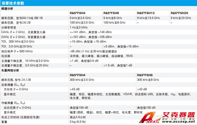 以下是艾克賽普為您介紹羅德與施瓦茨 R&S FSH13 手持式頻譜分析儀的簡要技術參數,如有相關問題,請聯系長沙艾克賽普儀器儀表公司m.jeraylynn.com,聯系電話:0731-84284278 84284378。