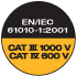 IEC/EN 61010-1:2001, 1000V CAT III, 600V CAT IV