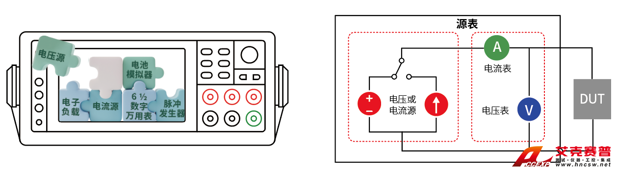 ?集六種設備功能于一體:電壓源、電流源、6 ?數字萬用表(DCV,DCI, ohms)、電池模擬器、電子負載及脈沖發生器