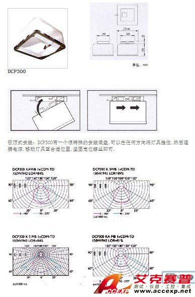 吸頂式安裝:DCP300有一個很特殊的安裝底盤.可以在任何方向?qū)艟邟熳?然后連接電源.移動燈具至合適位置.堅固定位螺絲即可.