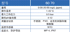 溶解氧傳感器:塑料主體、VP連接頭、防護等級IP68。這使電極和電纜連接即使在非常惡劣的工業環境中也能受保護,與固定電纜相比,電極的維護和更換更經濟簡單。膜具有很強的抗化學腐蝕性以及機械阻抗,可更換。