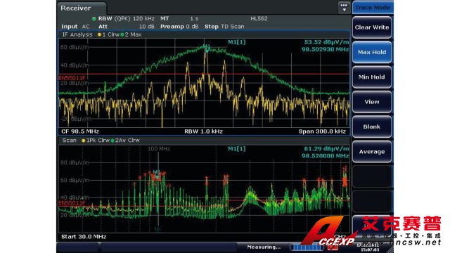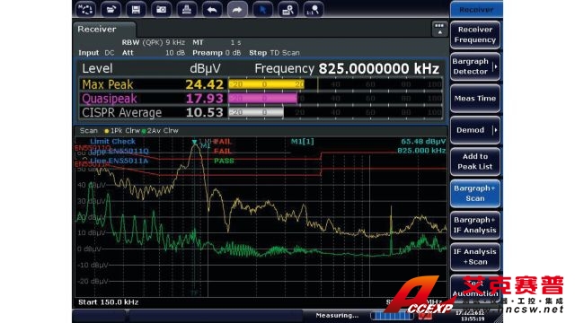 R&S ESRP EMI 測試接收機專用于開發(fā)階段的診斷測量和預一致性測量,以便產(chǎn)品準備好接受最終的認證測試。在 10 Hz 至 7 GHz 的頻率范圍內(nèi),接收機使用傳統(tǒng)的步進式頻率掃描或基于 FFT 的時域掃描(可大幅加快測量)測量電磁干擾。R&S ESRP 也可作為功能全面、強大的信號與頻譜分析儀,并適用于實驗室應用。R&S ESRP 配備觸摸屏和直觀的菜單結構,易于在任何模式下進行操作。